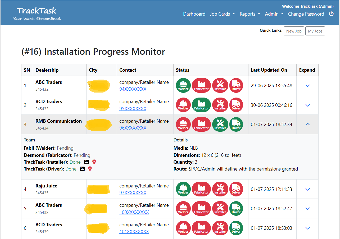 This app is ideal for businesses that manage production, delivery, or installation jobs across multiple locations: